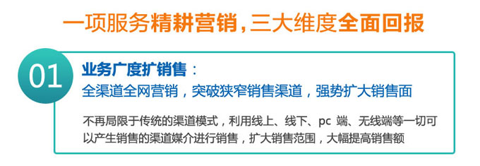 • 线下运营做托管:派驻职业营销团队,为企业提供不同层级的运营托管服务,全力协助企业销售业绩飙升!